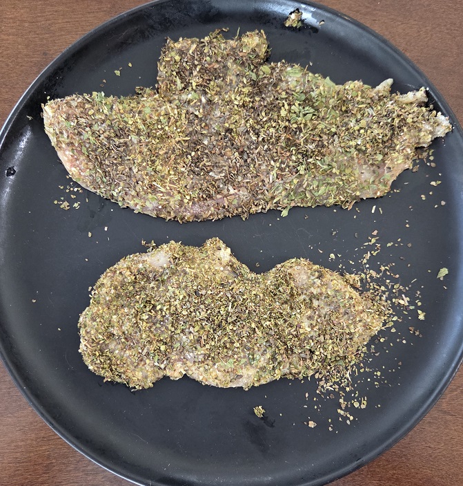 A simple Italian seasoning consisting of Oregano, Basil, Parsley and Marjoram awas added to the ‘coating’ for flavor.
